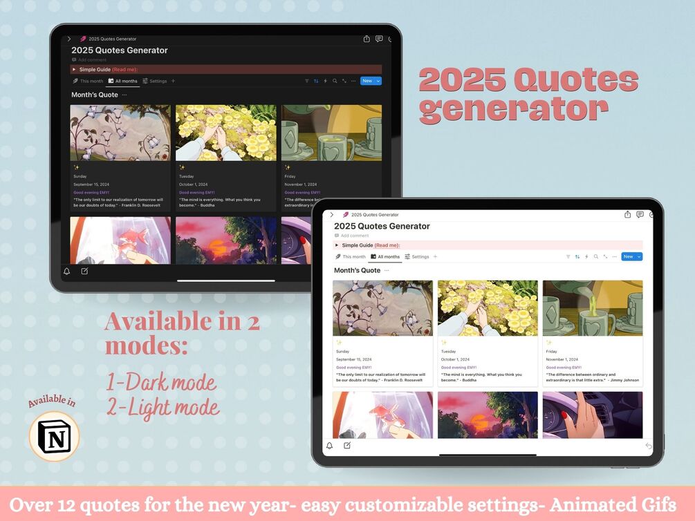 2025 Quotes Generator notion template