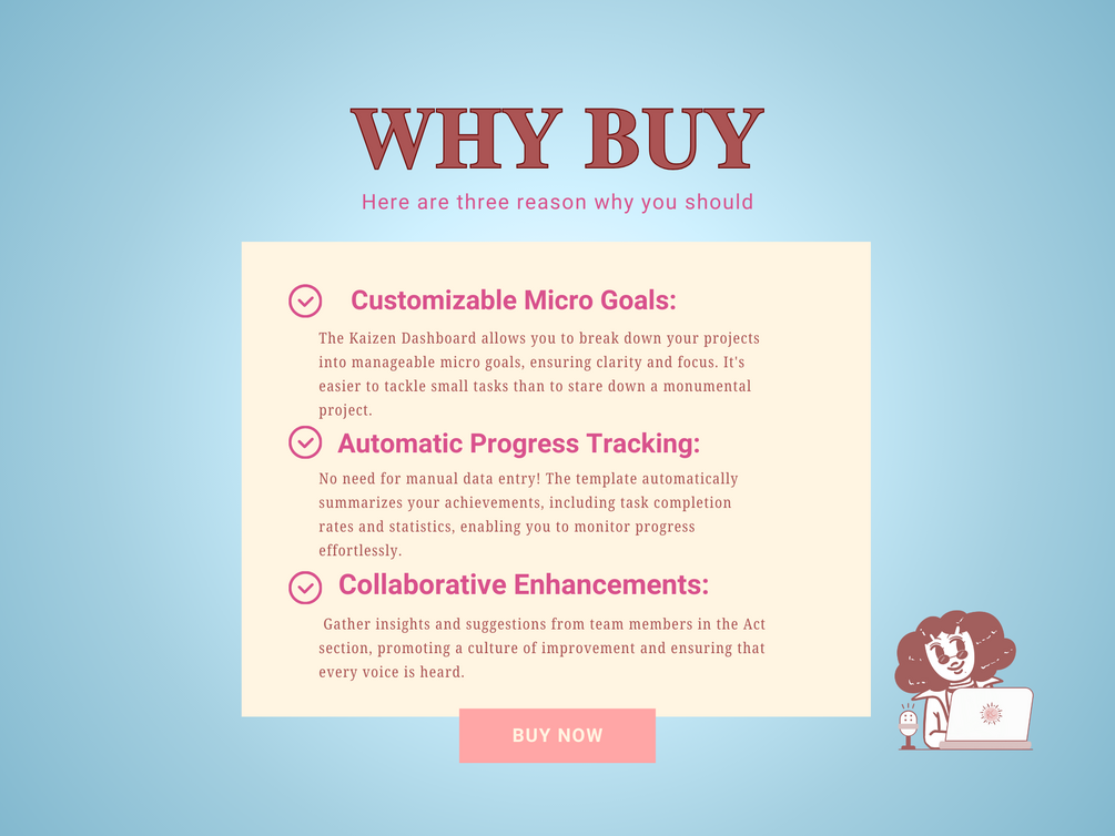 Investing in the Kaizen Dashboard isn't just about purchasing a template; it's about transforming how you approach your work. This powerful tool enhances accountability, fosters collaboration among team members, and ultimately leads to improved results.